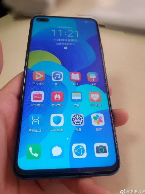 Fotografie vyobrazujú modré prevedenie Nova 6 5G. Všimnúť si môžeme displej s výrezom na dva selfie snímače v ľavom hornom rohu.