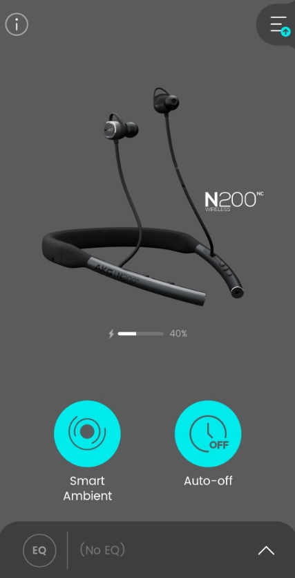 Vedľa nej sa nachádza ikona slúžiaca na nastavenie automatického vypnutia. V praxi to znamená, že pokiaľ cez slúchadlá neprechádza žiadny zvuk dlhšie ako 10 minút, funkcia ich za účelom šetrenia batérie automaticky vypne. V prostredí aplikácie ďalej nájdete aj možnosť nastavenia ekvalizéru.