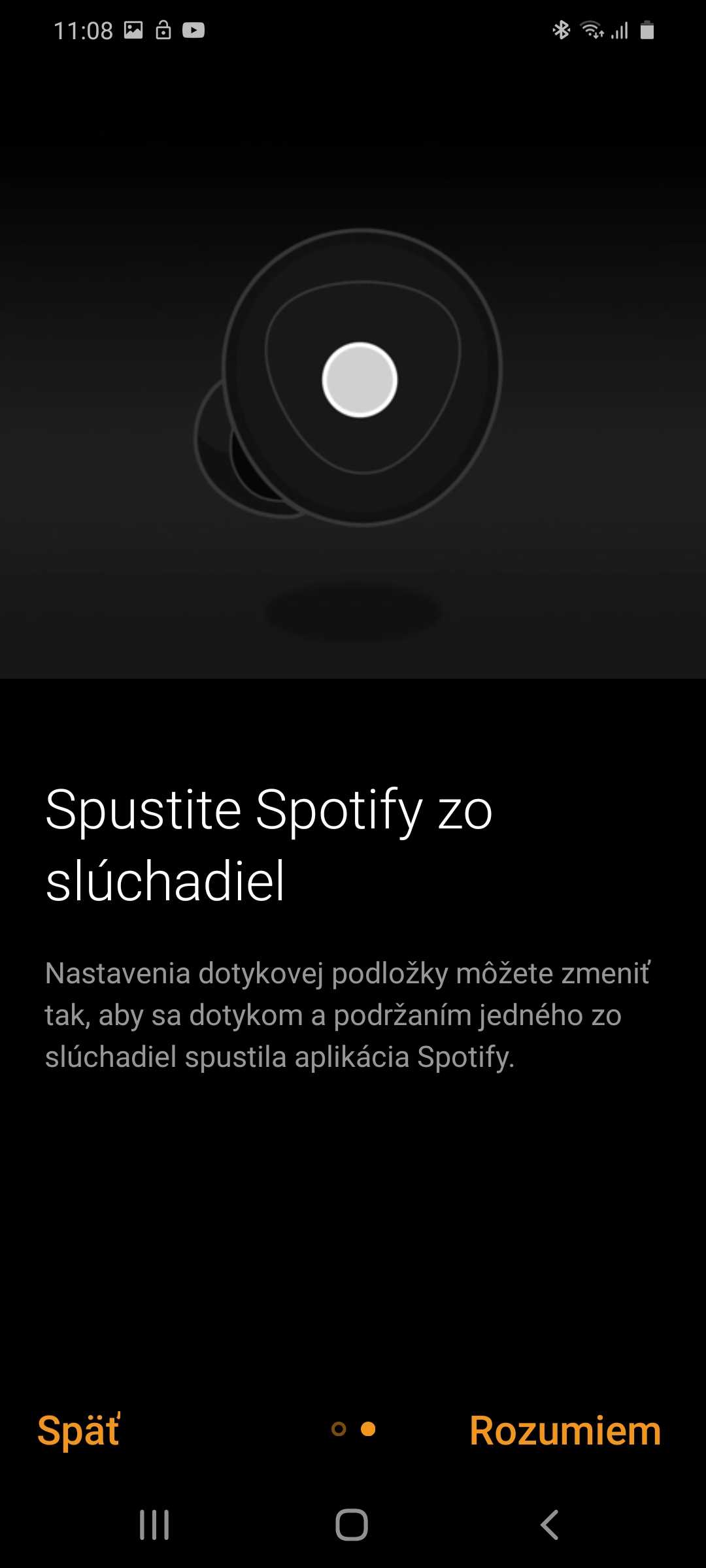 Vzhľadom na to, že Spotify patrí medzi absolútne najobľúbenejšie aplikácie pre streamovanie hudby, sa Samsung rozhodol, že ho zapracuje priamo do slúchadiel. Spotify tak môžete spustiť jednoduchým podržaním ľavého alebo pravého slúchadla. Nastaviť si to môžete v aplikácii v sekcii Dotyková podložka. Zvyšok ovládacích prvkov je vcelku základný, a to je len dobre.