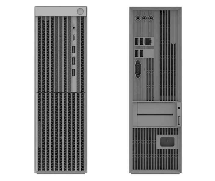Jeho dizajn vyzerá byť pomerne jednoduchý. Môžeme si všimnúť, že predná strana zariadenia je domovom pre hlavné tlačidlo, výstup pre slúchadlá, USB-C port a tri štandardné USB porty. Ostatne je vyplnená mriežkami. Qingyun má taktiež ponúknuť optickú mechaniku, pričom na zadnej strane nájdeme štyri ďalšie USB porty a porty pre sieťové káble.