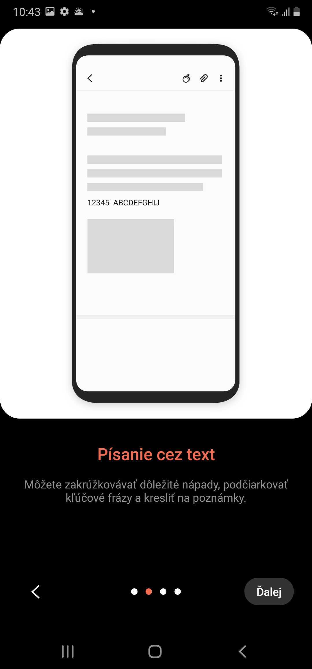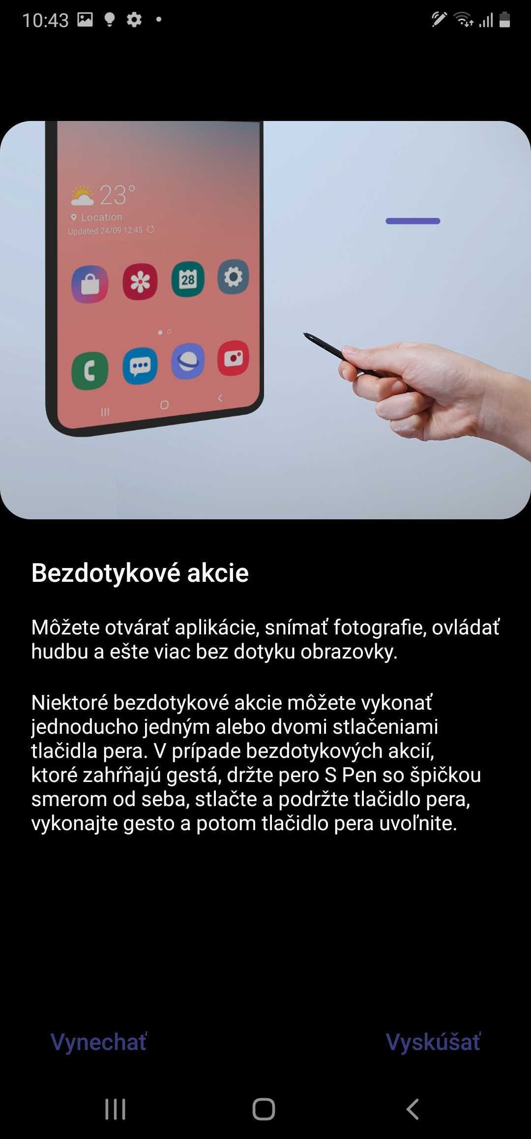 Nové sú aj gestá, ktorých veľký fanúšik však nie som. Stále som toho názoru, že je rýchlejšie telefón ovládať fyzicky či už perom alebo prstom. Každopádne, medzi nové gestá patrí nakreslenie čiar v určitých smeroch. Pomocou gest môžete telefónu prikázať, aby sa vrátil o jednu stránku dozadu, aby otvoril zoznam nedávno otvorených aplikácií alebo aby spustil možnosť písania na displej.