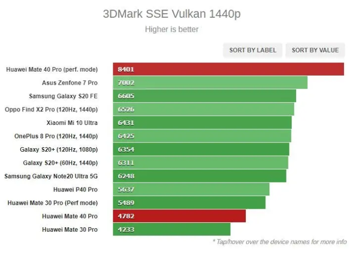Žiaľ, testovanie GFXBench ukázalo, že aj keď si Huawei Mate 40 Pro dokáže s 1080p displejom poradiť oveľa lepšie ako mnohé tohtoročné vlajkové lode, stále zaostáva za minuloročným iPhone 11 Pro Max.