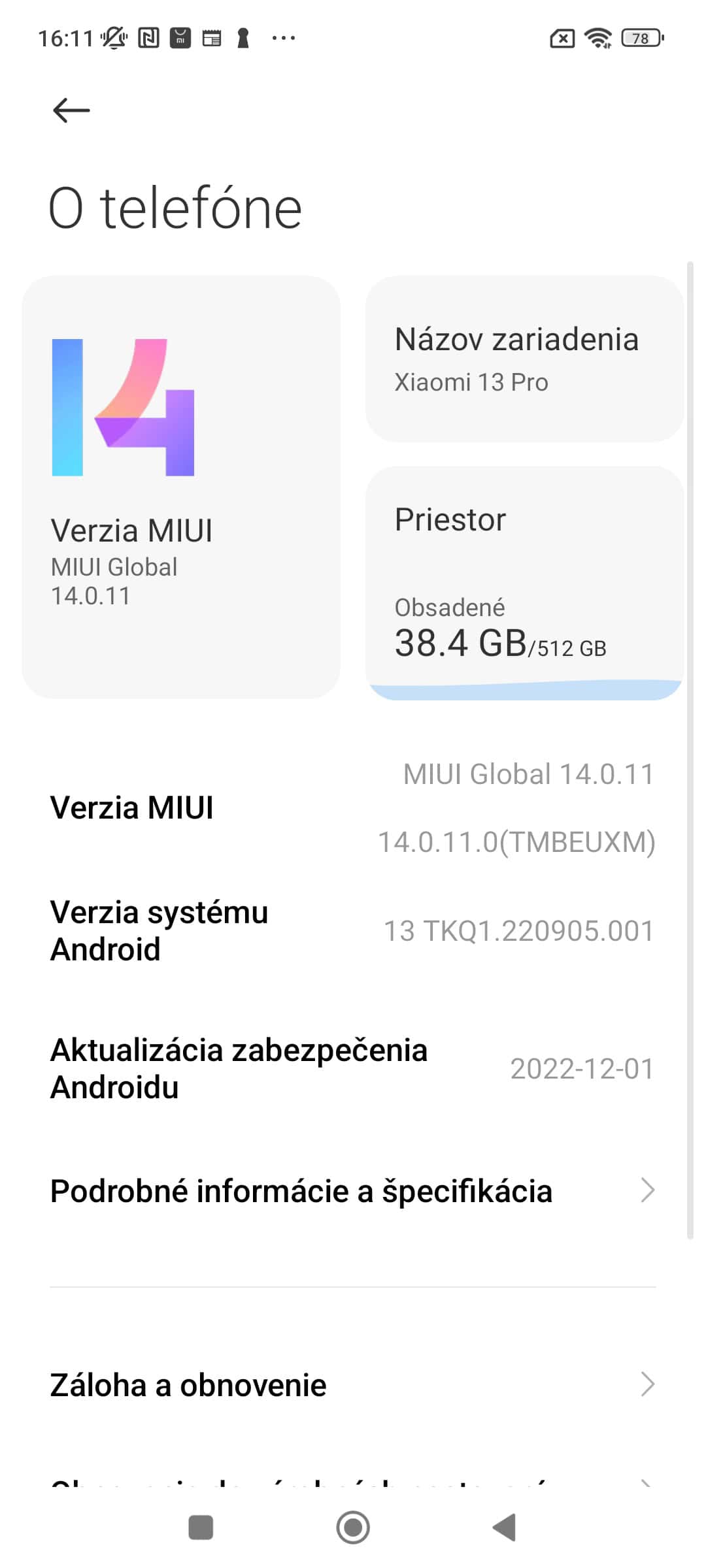 Xiaomi 13 Pro prichádza s predinštalovaným Android 13, ktorý prekrýva najnovší MIUI 14. Nami testovaný model mal nainštalovanú bezpečnostnú záplatu k 1. decembru 2022, no predpokladám, že toto sa ešte do oficiálneho uvedenia na trh zmení.
