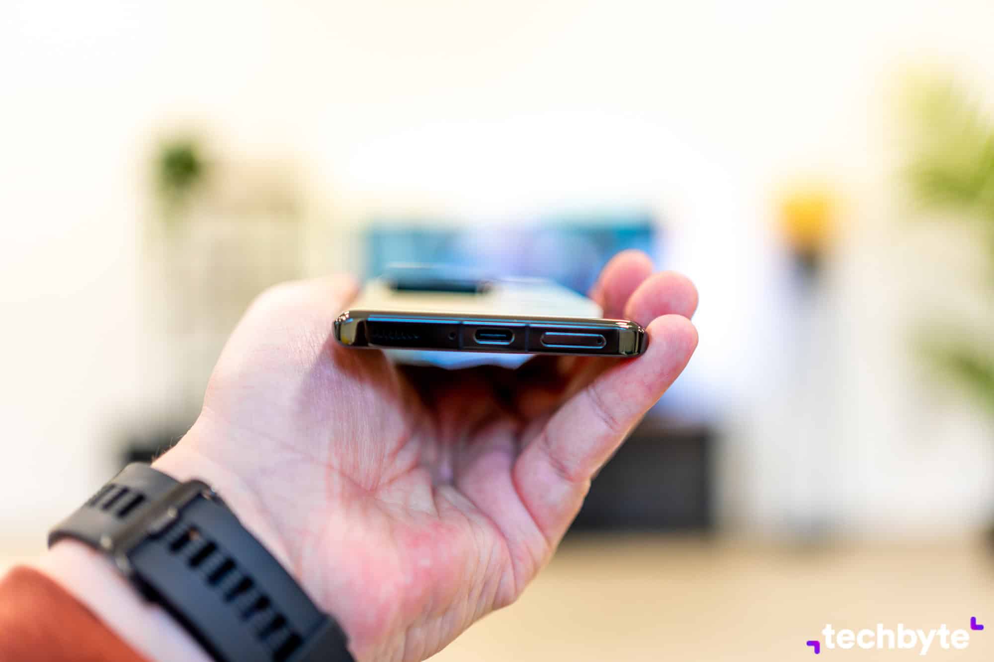 Prednej strane dominuje krásny OLED panel, ktorý je vo vrchnej časti prerušený kruhovým výrezom pre selfie fotoaparát. Spomeniem ešte označenie Leica na fotomodule, pod ktorým nájdete názov použitej technológie – Vario-Summicron 1:1.9-2.2/14-75 ASPH.