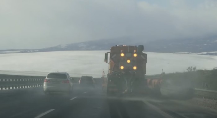 Za posýpacím autom si držte odstup. Odlietavajúca soľ a kamienky môžu poškodiť lak aj sklo a rýchlosť sa môže dostať aj pod minimálnych 80 km/h platných na diaľniciach a rýchlostných cestách. Je to pomalé a nepríjemné, no zákonné a bezpečné.