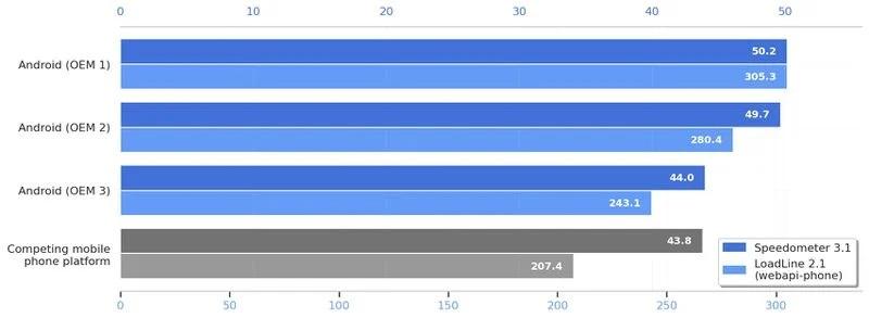 Nové vlajkové telefóny s týmto systémom dosiahli rekordné výsledky v dvoch benchmarkoch určených na meranie webového výkonu, konkrétne Speedometer a MotionMark (LoadLin). Zjednodušene povedané, kombinácia Androidu a Chromu je pri surfovaní rýchlejšia než iOS so Safari.