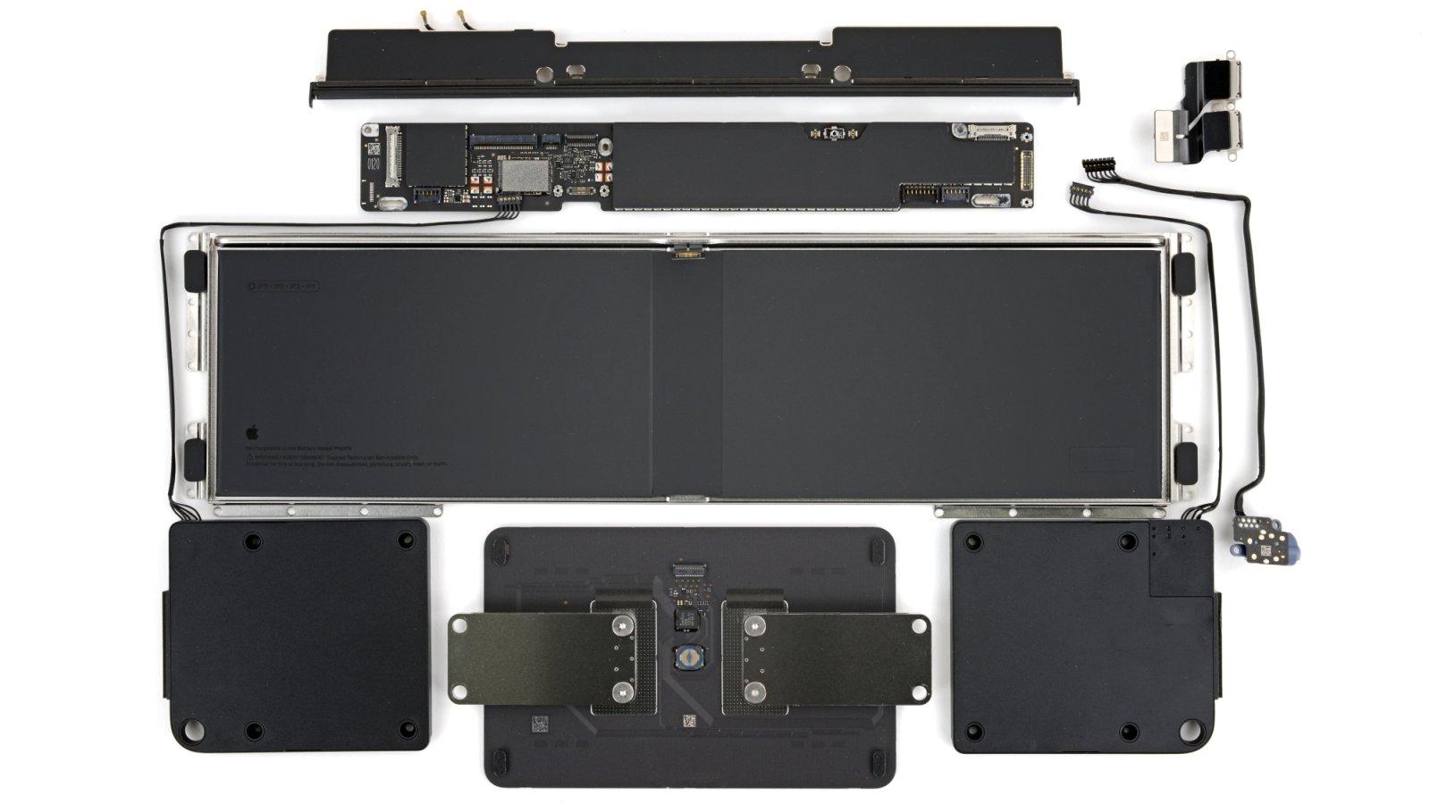 Práve akumulátor sa stal hlavným prekvapením celého rozboru. Apple ho totiž k telu počítača neprilepil, ale umiestnil do odnímateľnej vaničky prichytenej osemnástimi skrutkami. Tento prístup pravdepodobne súvisí s pripravovaným nariadením EÚ o batériách, ktoré bude od budúceho roka vyžadovať, aby akumulátory v mobilných produktoch boli vymeniteľné používateľom.